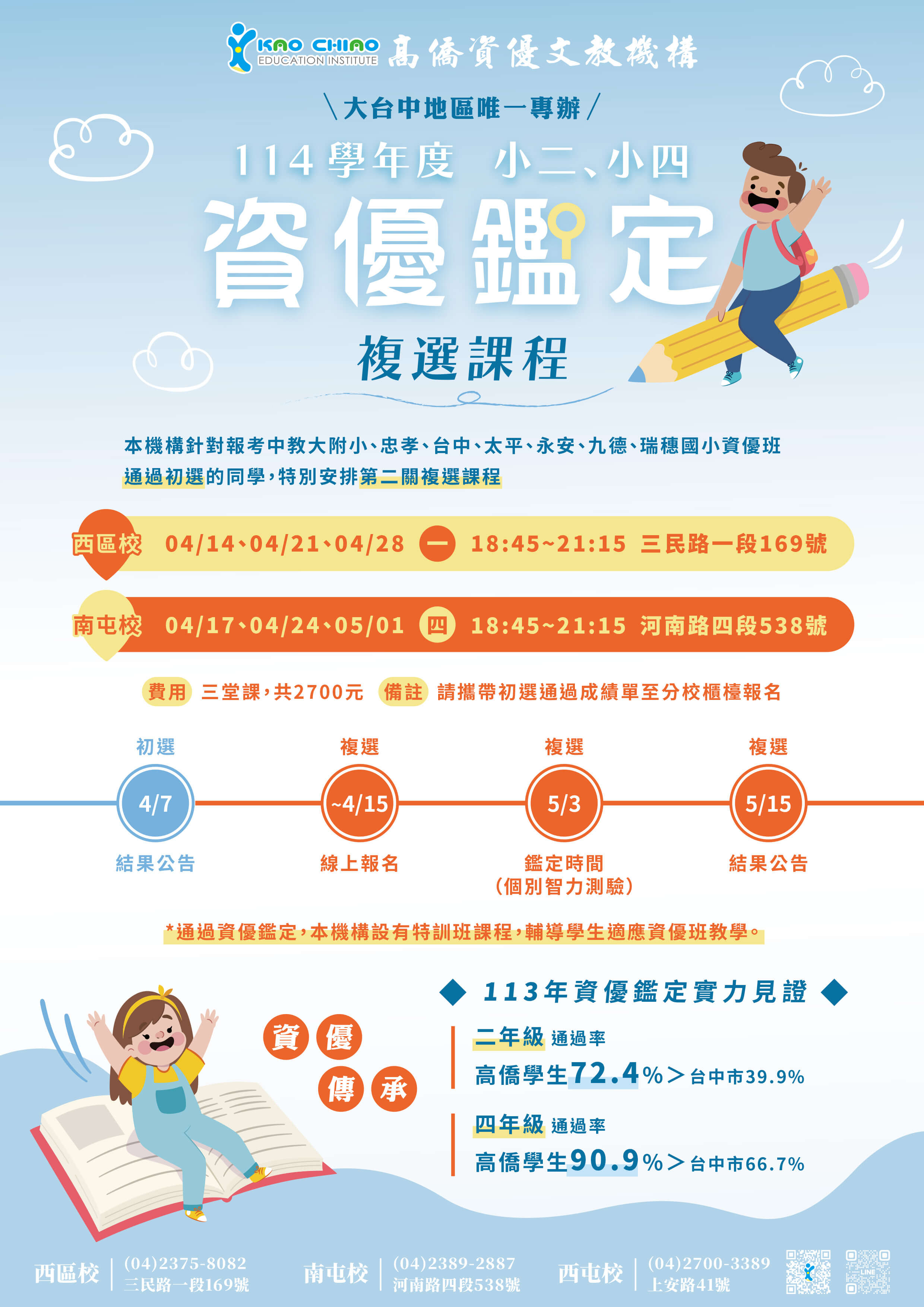 05/03(六)複選鑑定前,西區校、南屯校各規畫三堂課程,透過「實際操作及演練」過程,幫助孩子建立自信,從容應對「個別智力測驗」。